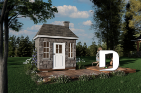 Vue avant - MODÈLE DE BASE - Plan de maisonnette gratuit pour enfants, à construire soi-même - Mini-maison champêtre - Pebble