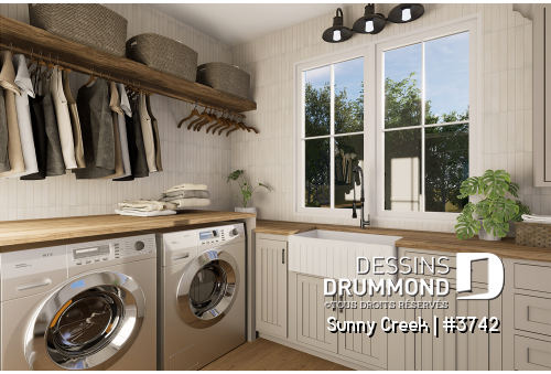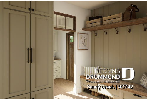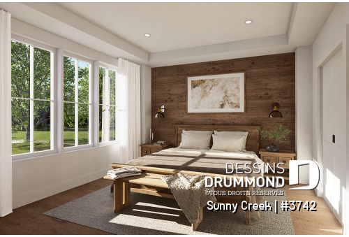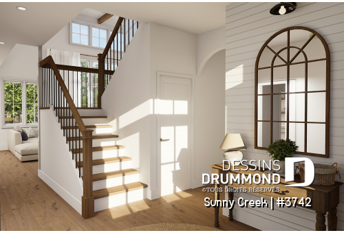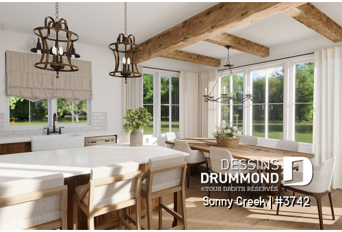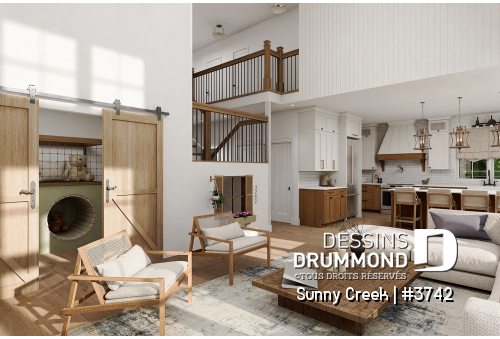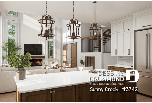 Cependant, si des poutres ou moulures de bois ou imitation de bois sont installées dans un plafond cathédral (sur nos illustrations ou photos), elles ne sont pas incluses dans les estimations. À noter que les poutres de bois illustrées sur l'extérieure de nos maisons sont incluses dans le coût, mais elles sont «capées » et non en bois massif.