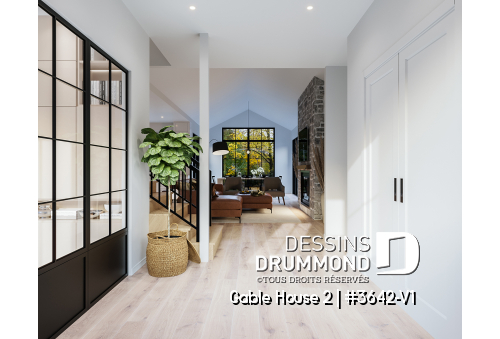 Cependant, si des poutres ou moulures de bois ou imitation de bois sont installées dans un plafond cathédral (sur nos illustrations ou photos), elles ne sont pas incluses dans les estimations. À noter que les poutres de bois illustrées sur l'extérieure de nos maisons sont incluses dans le coût, mais elles sont «capées » et non en bois massif.