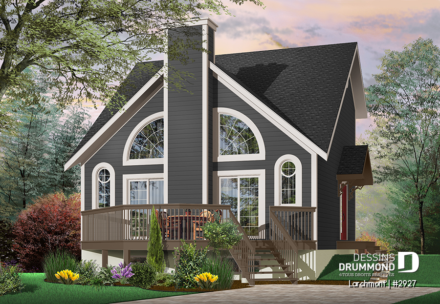 • Vue avant - MODÈLE DE BASE - Plan de petit chalet, grande suite des maîtres, aire ouverte, mezzanine, sous-sol aménageable - Larchmont
