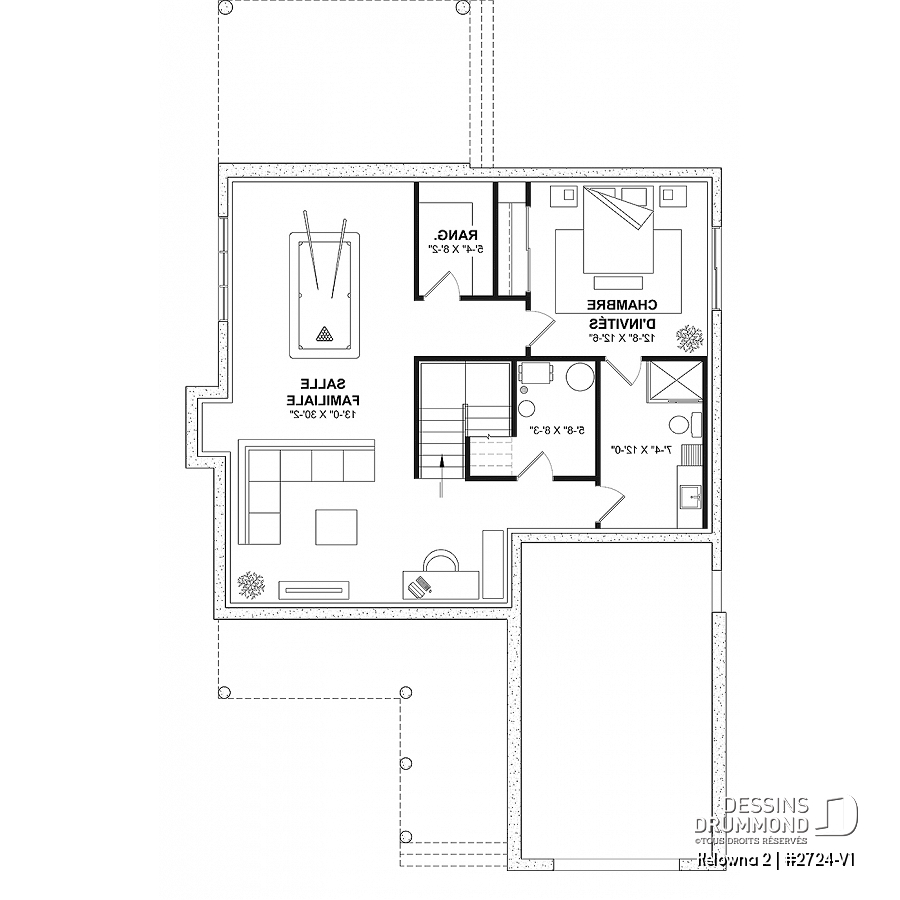 Sous-sol aménagé (Optionel $) - Plan de maison champêtre 4 à 5 chambres, garage, bureau, terrasse abritée et belle suite des parents - Kelowna 2