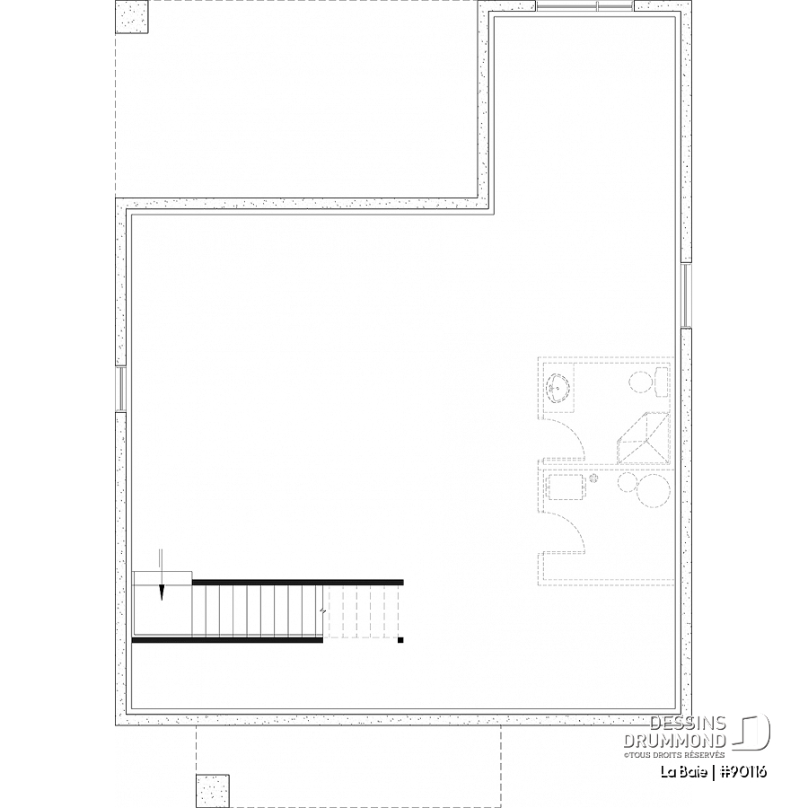 Si vous souhaitez acheter l’option du plan de sous-sol aménageable (le plan de la maison vous sera livré avec un plan de sous-sol non fini), veuillez sélectionner cette option dans le panier d'achat, dans la section "Sélectionner votre fondation". Si vous ne sélectionnez pas cette option, vous recevrez une dalle flottante comme fondation.