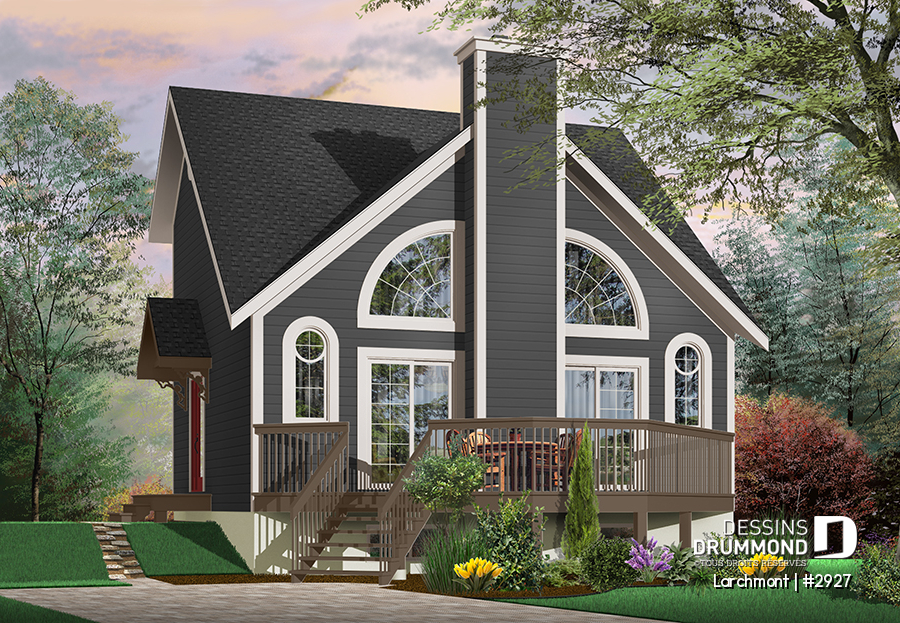 • Vue avant - MODÈLE DE BASE - Plan de petit chalet, grande suite des maîtres, aire ouverte, mezzanine, sous-sol aménageable - Larchmont