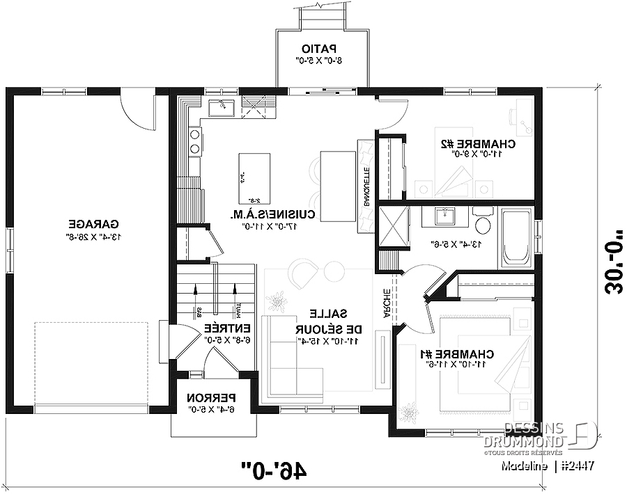 Rez-de-chaussée: Entrée split, cuisine, salle à manger, salle familiale, 2 chambres, salle de bain. Sous-sol non fini, à aménager. Garage une voiture. *Sous-sol aménagé (optionnel $): 2 chambres, salle de bain, salle mécanique, salle de lavage et salle de séjour. --- *Si vous souhaitez acheter le plan du sous-sol aménagé, tel que présenté sur la page de ce plan, veuillez sélectionner cette option dans le panier d'achat, dans la section "Sélectionner votre fondation". Si vous ne sélectionnez pas cette option, vous recevrez le sous-sol non fini, sans frais additionnel.