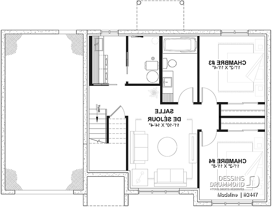 *Si vous souhaitez acheter le plan du sous-sol aménagé, tel que présenté sur la page de ce plan, veuillez sélectionner cette option dans le panier d'achat, dans la section "Sélectionner votre fondation". Si vous ne sélectionnez pas cette option, vous recevrez le sous-sol non fini, sans frais additionnel.