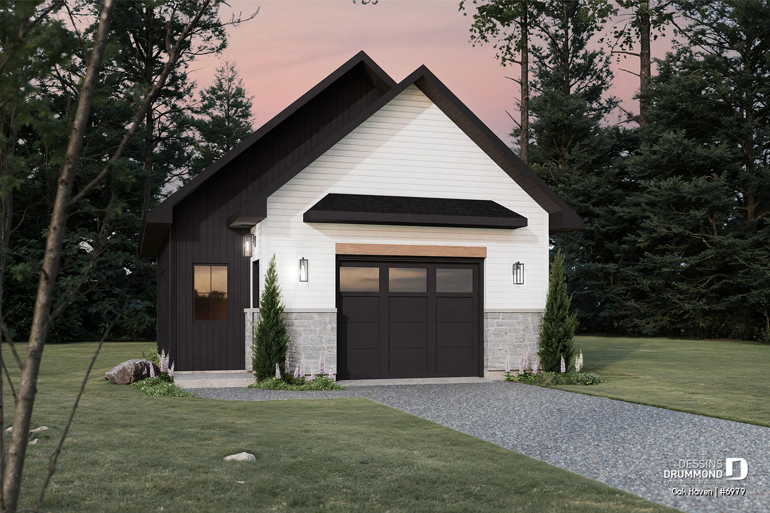 Rez-de-chaussée - Modèle de garage deux voitures de style Farmhouse, avec toilette au rdc et rangement à l'étage. - Oak Haven