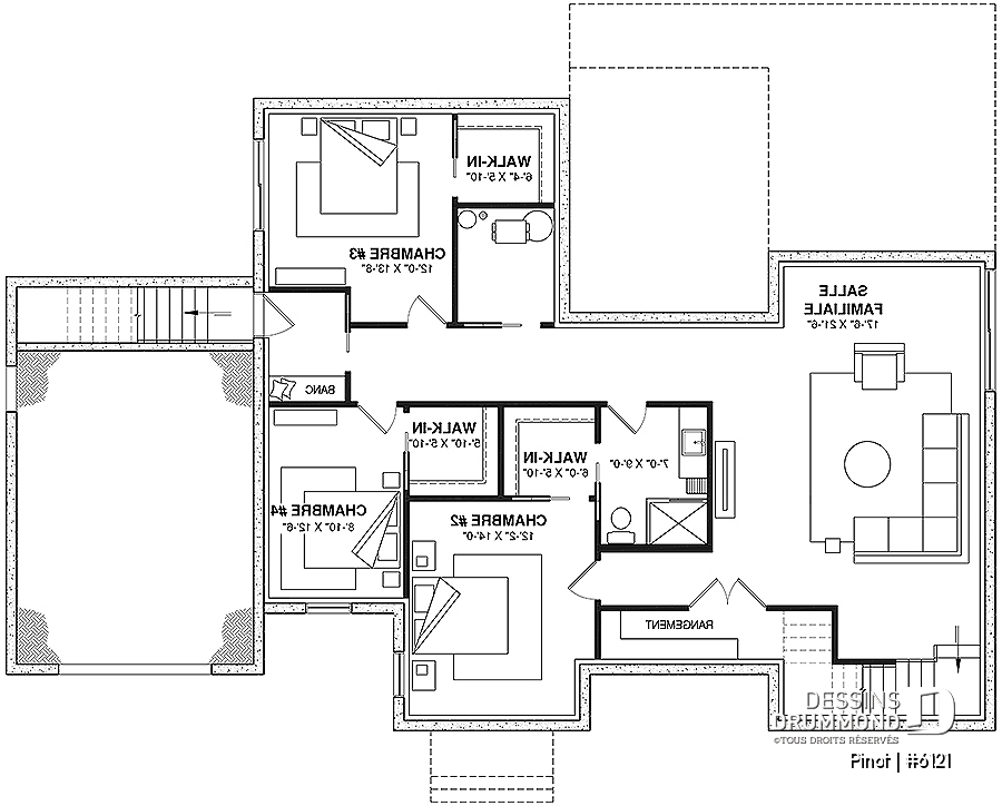 *Si vous souhaitez acheter le plan du sous-sol aménagé, tel que présenté sur la page de ce plan, veuillez sélectionner cette option dans le panier d'achat, dans la section "Sélectionner votre fondation". Si vous ne sélectionnez pas cette option, vous recevrez le sous-sol non fini, sans frais additionnel.