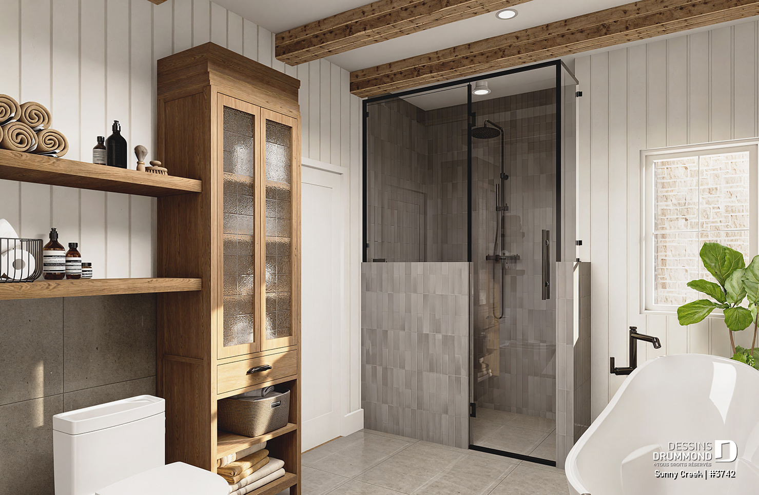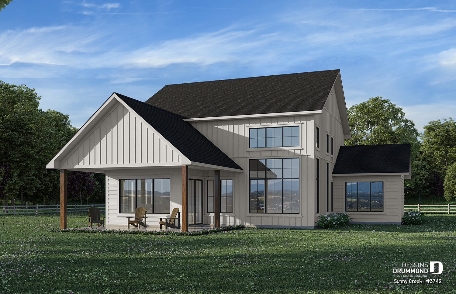 Ce plan est conçu sur une dalle flottante, mais plusieurs options de fondation sont disponibles afin de l’adapter à votre terrain et à vos besoins. Cette maison Farmhouse élégante et lumineuse promet un quotidien confortable, convivial et plein de charme, où chaque détail a été pensé pour votre bien-être.