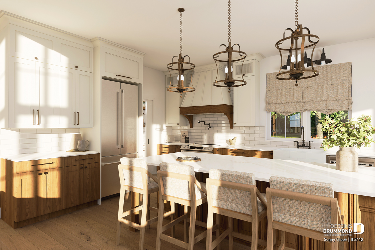 Cuisine avec grand îlot convivial, idéale pour recevoir.