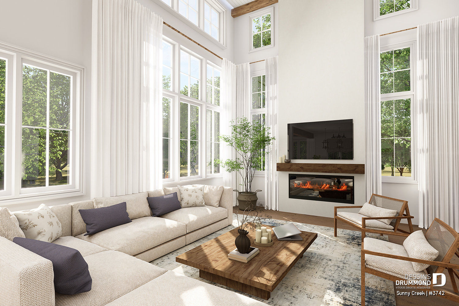 Plafonds de 9' au rez-de-chaussée et 18'6'' à la salle familiale, inondant l’arrière de lumière naturelle.