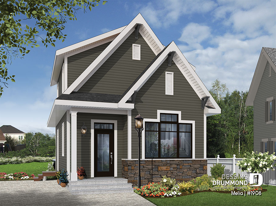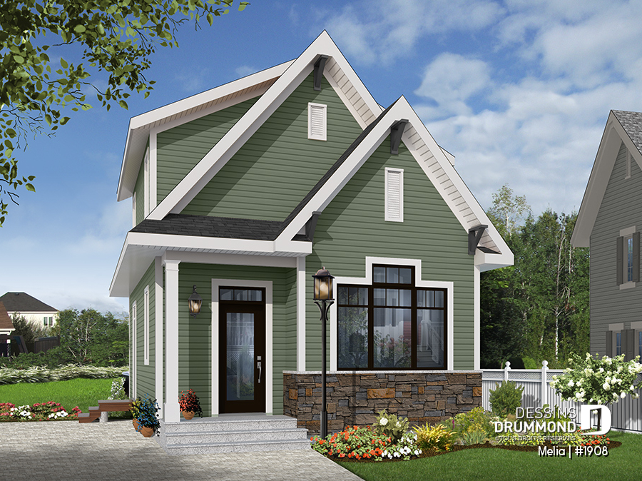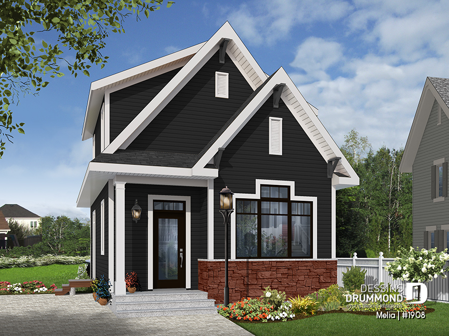 Plan de mini-maison champêtre MELIA : plan abordable 2 à 3 chambres avec charme intemporel et design optimisé