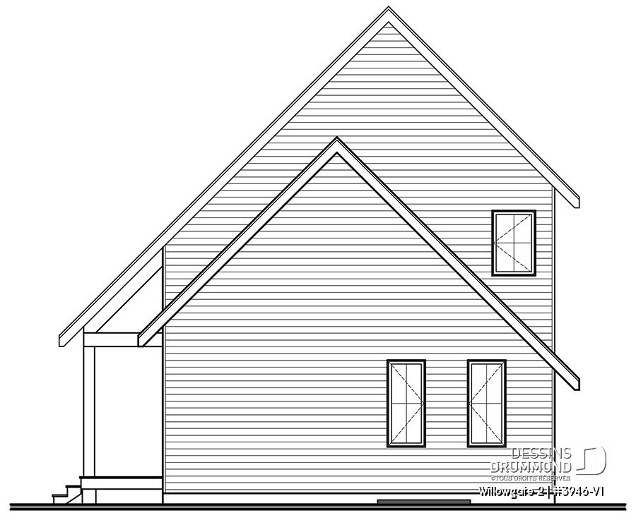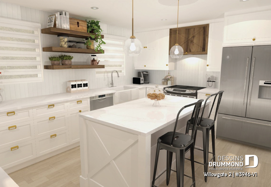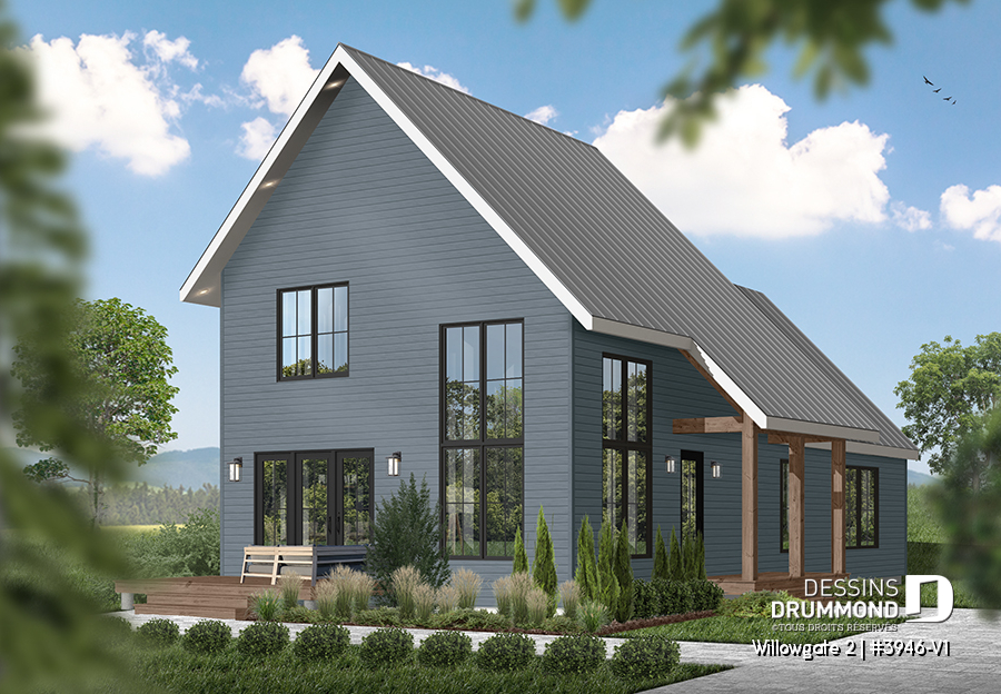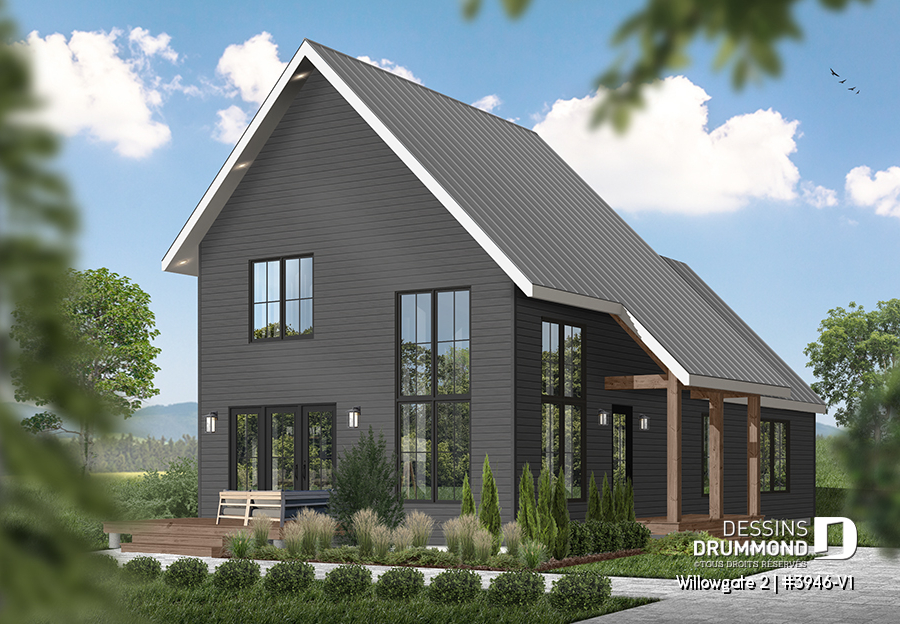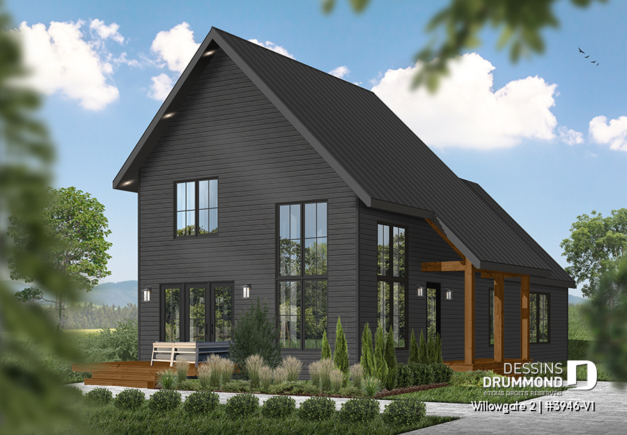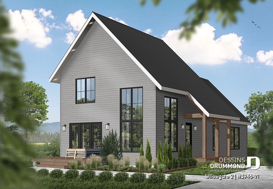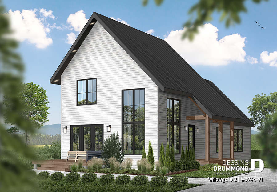 Le plan de maison WILLOWGATE 2 (#3946-V1), un chalet moderne de 3 chambres, style scandinave, propose 1 512 pieds carrés avec une fenestration abondante. Le plafond cathédrale partiel dans la salle de séjour et dans la suite des parents, en offre encore d’avantage en termes de luminosité.