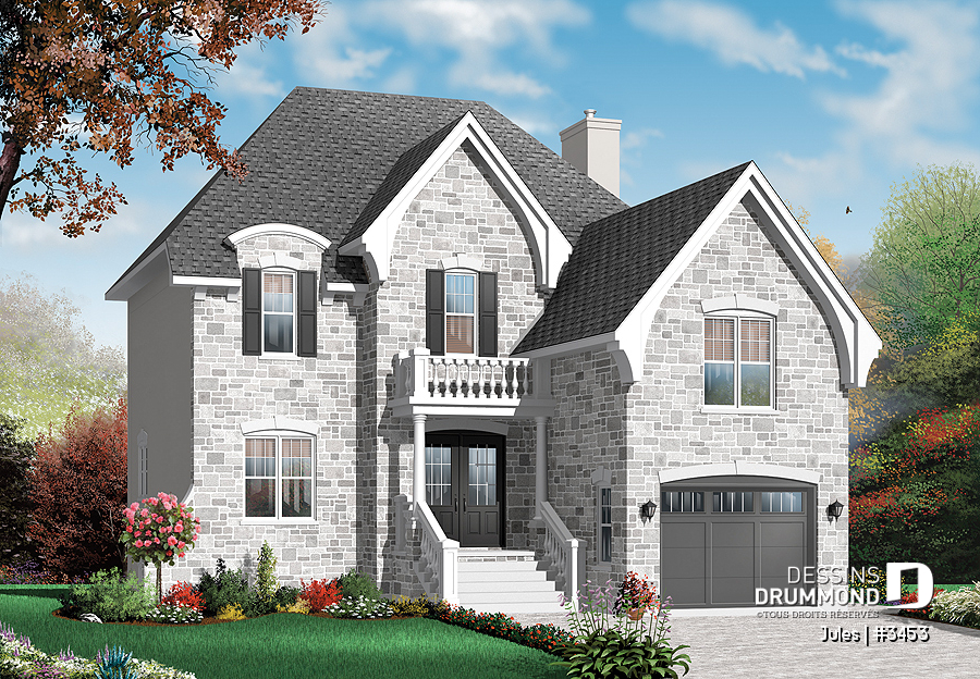 Conçu avec une élégante influence européenne, ce charmant cottage d’une largeur de seulement 34 pieds est parfaitement adapté aux terrains étroits, comme on en retrouve fréquemment dans les nouveaux quartiers résidentiels.