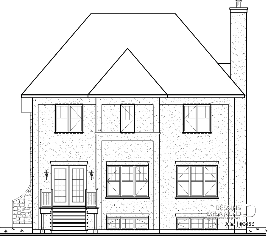 Conçu avec une élégante influence européenne, ce charmant cottage d’une largeur de seulement 34 pieds est parfaitement adapté aux terrains étroits, comme on en retrouve fréquemment dans les nouveaux quartiers résidentiels.