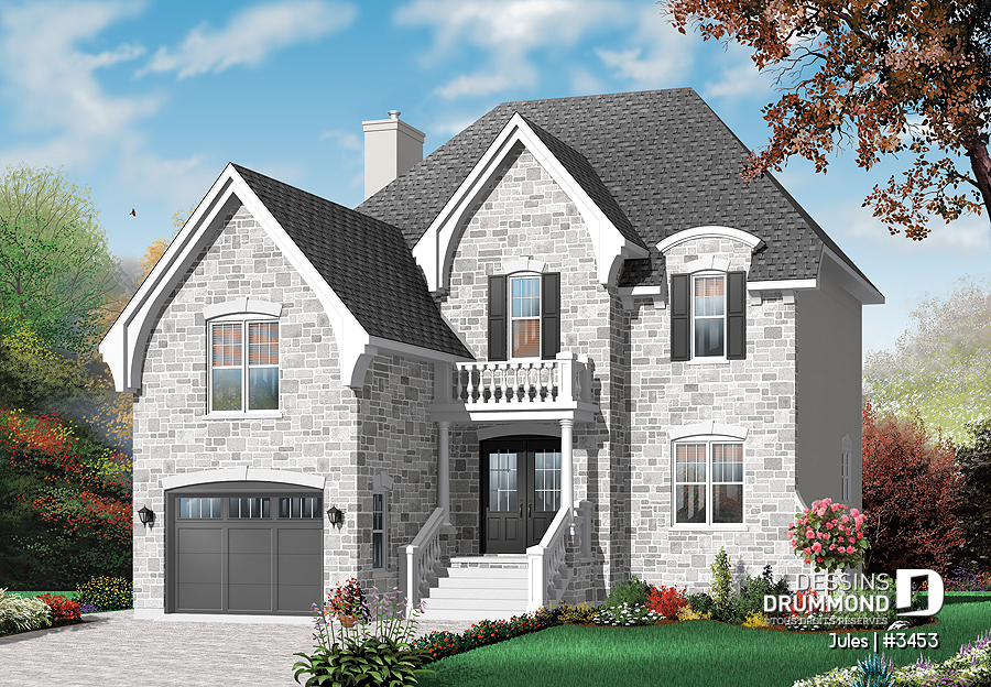• Vue avant - MODÈLE DE BASE - Cottage pour terrain étroit, bureau, 3 chambres, garage, espace boni - Jules