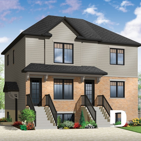 Vue avant - MODÈLE DE BASE - Plan de triplex économique moderne, 2 chambres par unité, coin buanderie, plancher à aire ouverte - Abbot 3