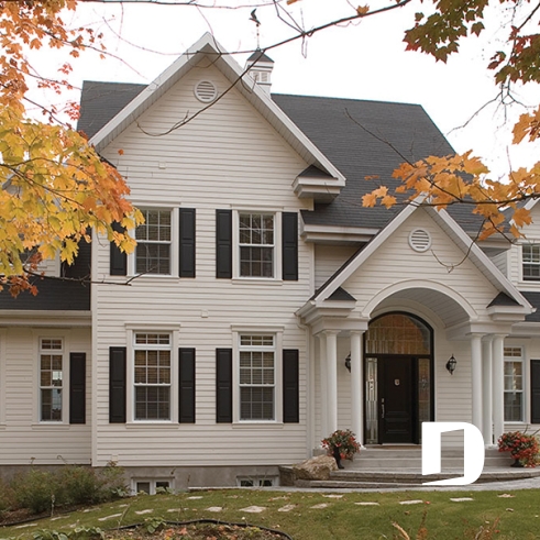 Volets, lucarnes, fenestration abondante, grandes colonnes à l'entrée principale.