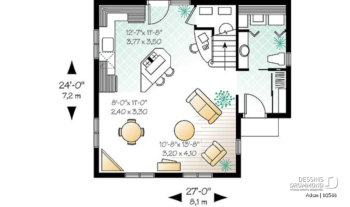 | Largeur | 27'0" | Profondeur | 24'0" |