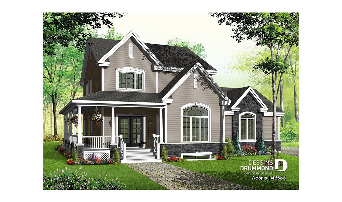 Plafond à 9pi au rez-de-chaussée, galerie couverte reliant l'avant à l'arrière, garage double avec descente au sous-sol, dînette tout en lumière.
