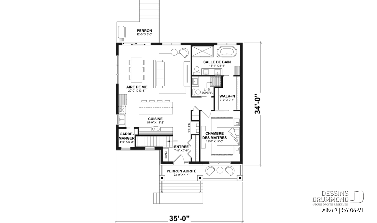 ** Une version avec deux chambres au rez-de-chaussée est disponibles également, voir le plan no. 6106.