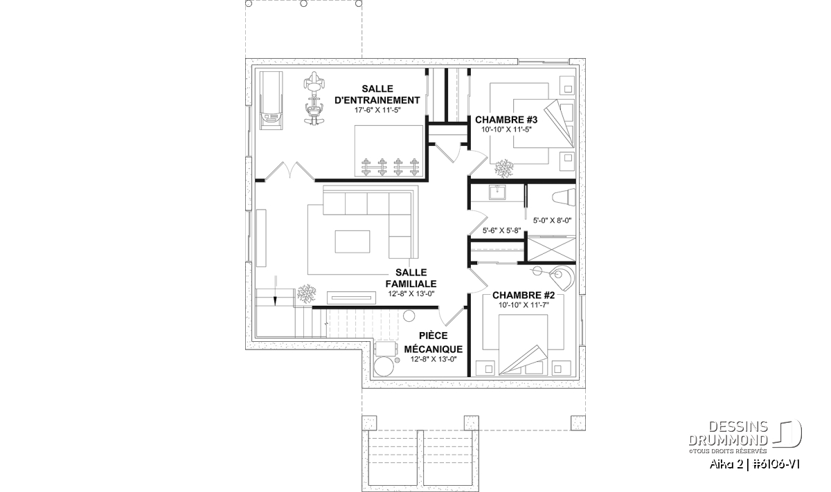 *Sous-sol entièrement aménagé (optionnel) permettant l'aménagement de 2 chambres et salle d'entraînement (ou chambre #4), pour un total possible de 4 chambres.
