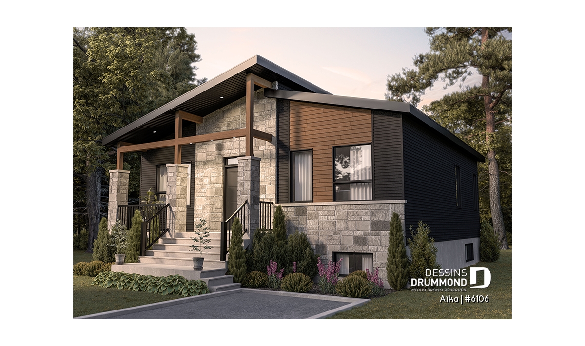 Plain-pied moderne rustique 2 chambres, abordable