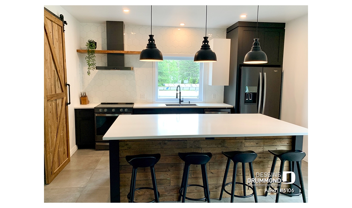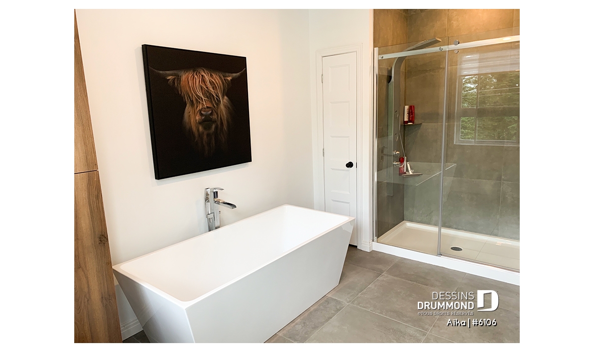 Aire ouverte, Salle de lavage au rez-de-chaussée, Bureau / Salle étude, Vue paronamique, Ilôt, Plafond à plus de 8', Terrain étroit, Vestiaire, Bain et douche séparés, Lavabo double
