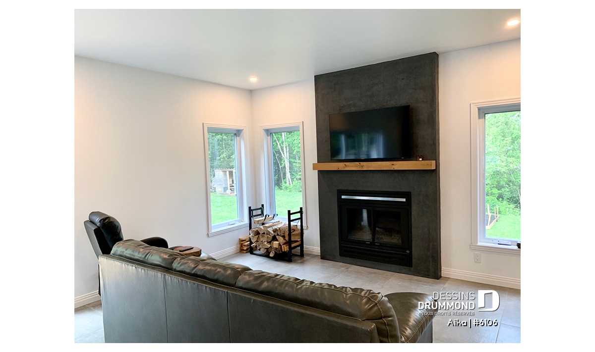 Sous-sol - Plan de plain-pied 2 chambres contemporain, cuisine et salon à l'arrière de la maison, belle fenestration - Aïka