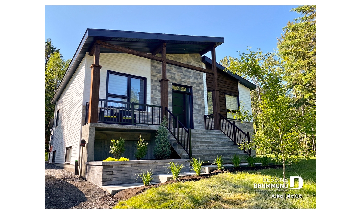 Alternative - Plan de plain-pied 2 chambres contemporain, cuisine et salon à l'arrière de la maison, belle fenestration - Aïka
