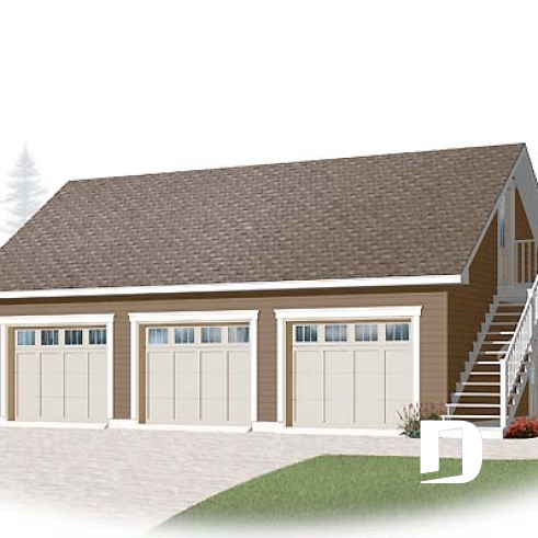 Plan de garage triple à étages, avec espace boni au deuxième, à aménager