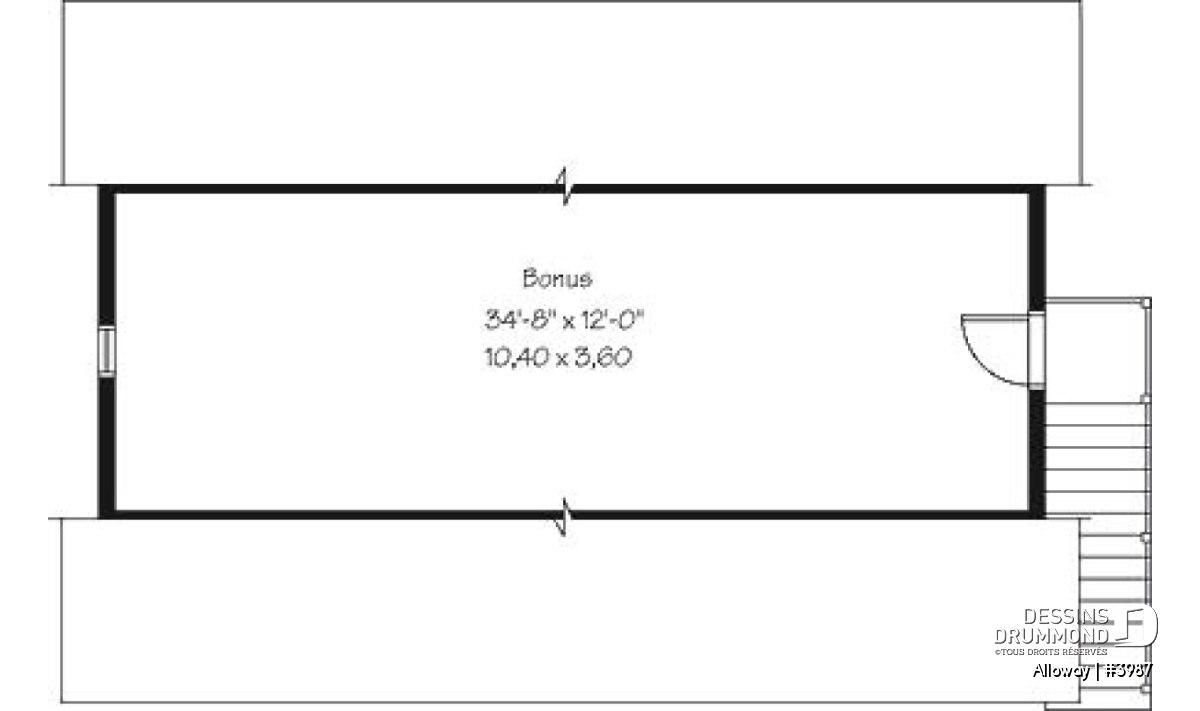 L'espace boni aménageable est généralement prévu au-dessus du garage et il est accessible de la maison. Comme il est prévu aménageable, il pourra devenir un bureau, un espace buanderie, une salle de bain, un coin bibliothèque ou même une chambre additionnelle pour laquelle les propriétaires devront s'assurer d'avoir une fenêtre conforme aux normes en vigueur. De plus, la finition de cette espace boni est toujours INCLUSE dans nos estimation du coût de construction, sauf si avis contraire dans les sections « Description et/ou Éléments descriptifs » de la page du plan.