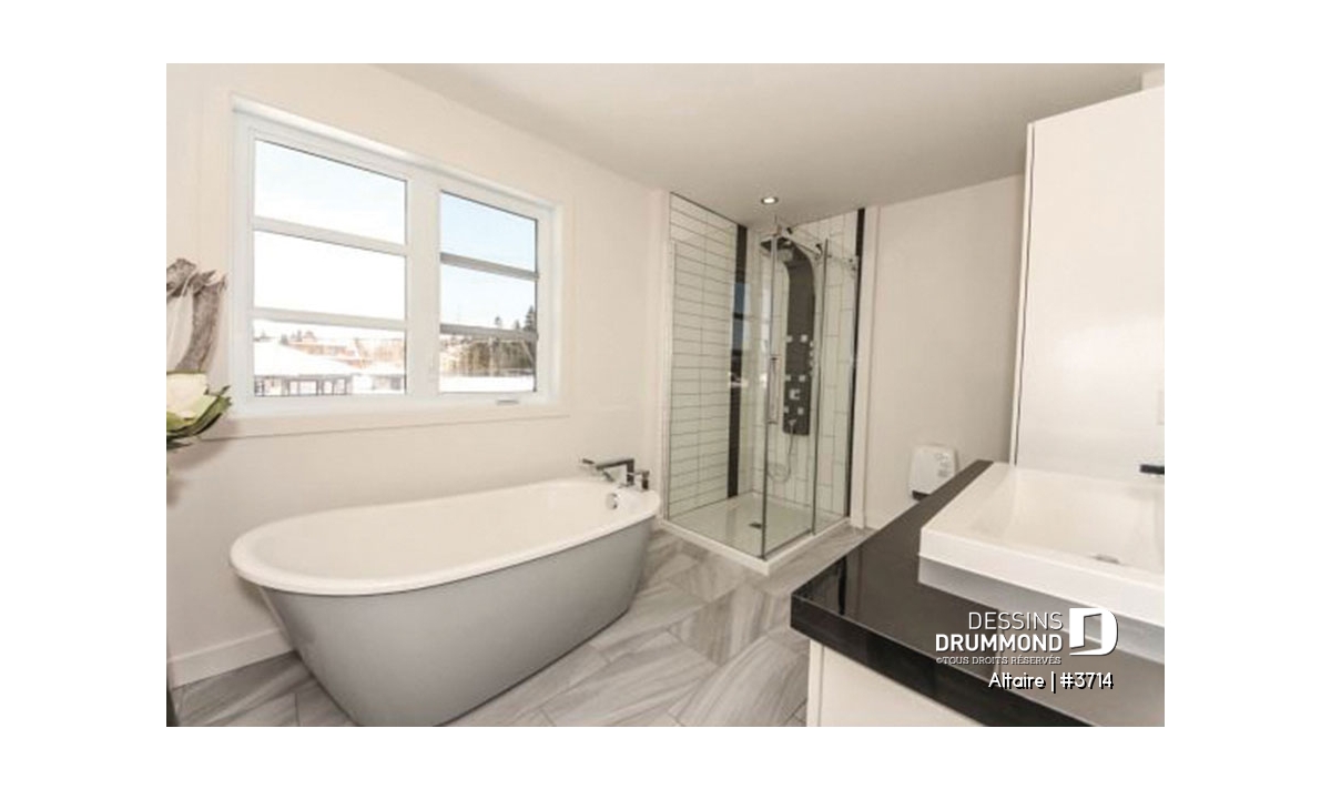 Garde-manger, Foyer, Aire ouverte, Salle de lavage au rez-de-chaussée, Walk-in ch. maîtres, Ilôt, Bain et douche séparés, Lavabo double, Entrepreneur