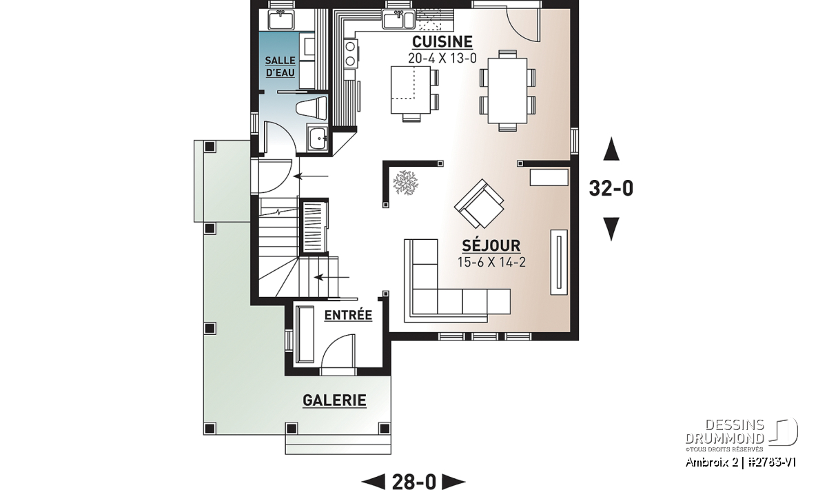 | Largeur | 28'0" | Profondeur | 32'0" |
