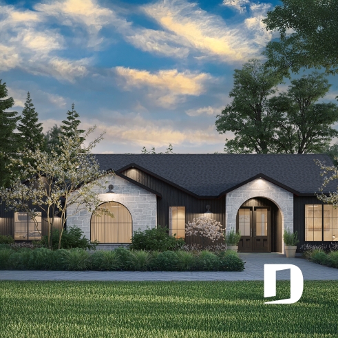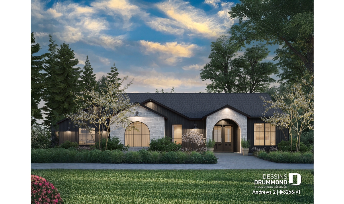 La maison ANDREWS 2 (#3268-V1) est un grand plain-pied de style moderne, inspiré de l’architecture belge, qui mise sur des matériaux nobles et chaleureux afin de créer une ambiance élégante et conviviale. Conçue pour la vie de famille, elle propose un plan à chambres séparées très recherché : la suite des parents occupe un côté complet de la maison, tandis que les chambres des enfants ou des invités sont regroupées à l’opposé, favorisant la tranquillité et l’intimité de chacun.