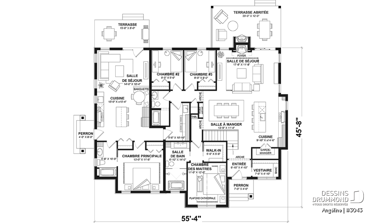 Salle de lavage au rez-de-chaussée, Chambres séparées, Foyer, Walk-in ch. maîtres, Vestiaire, Garde-manger, Aire ouverte, Aire ouverte, Ilôt, Ilôt, Terrasse abritée, Arche, Salle de lavage au rez-de-chaussée, Banquette, Dinette / Coin déjeuner