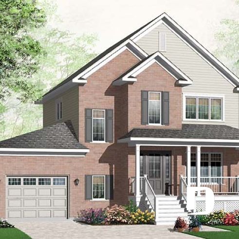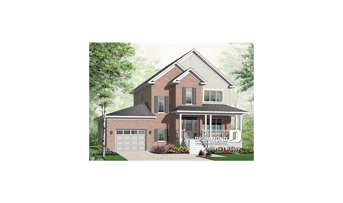 Vue avant - MODÈLE DE BASE - Plan de maison offrant garage, 3 chambres, coin lecture - Arbosse