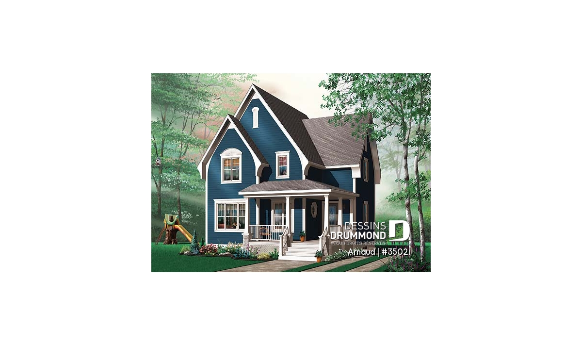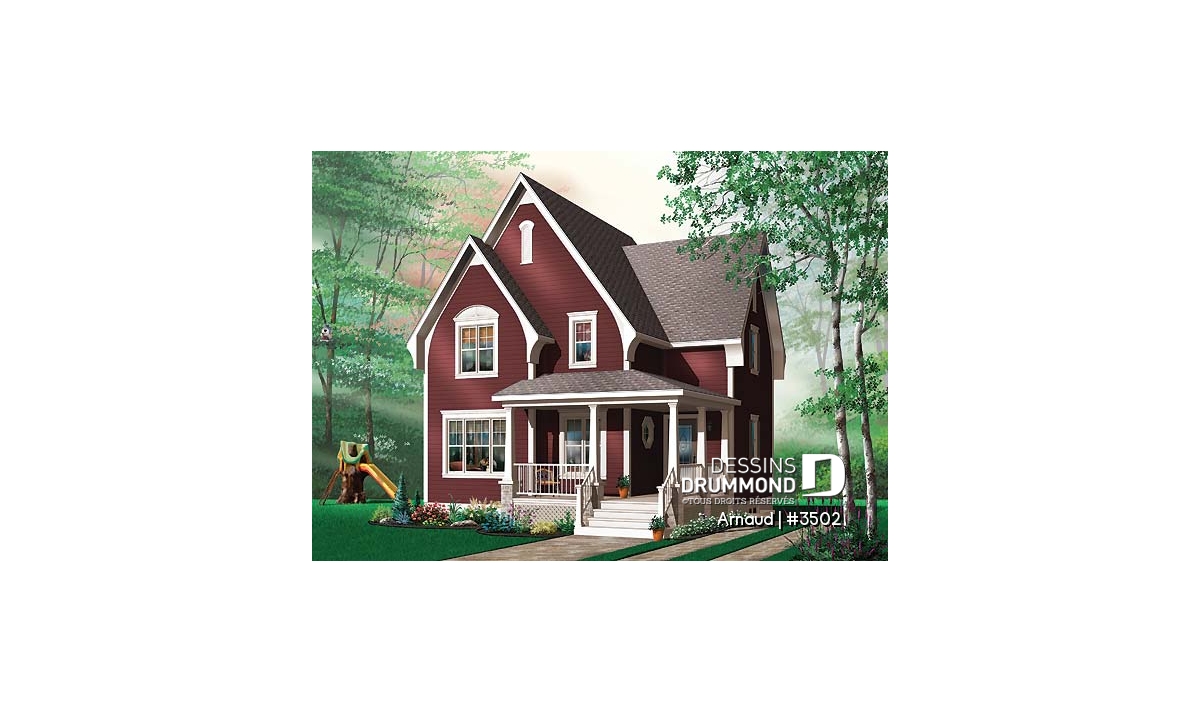 À l’étage, deux aménagements sont proposés. D’abord le modèle 3502 suggère deux chambres intéressantes, un espace boudoir ou coin ordinateur et une salle de bain avec douche de grand format et bain en coin alors que le modèle 3503 suggère trois chambres, une salle de bain offrant un bain sur pattes fort bien approprié au style de la maison, ainsi qu’une douche en coin, un « must » aujourd’hui que cette douche indépendante du bain.