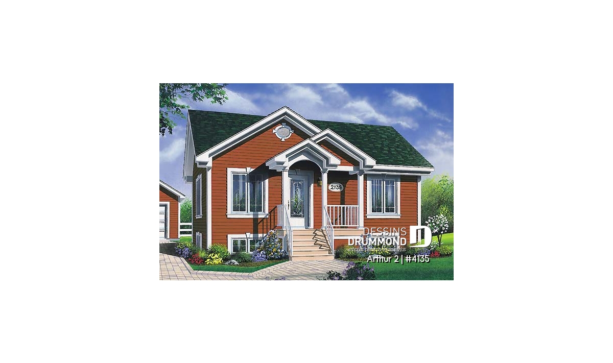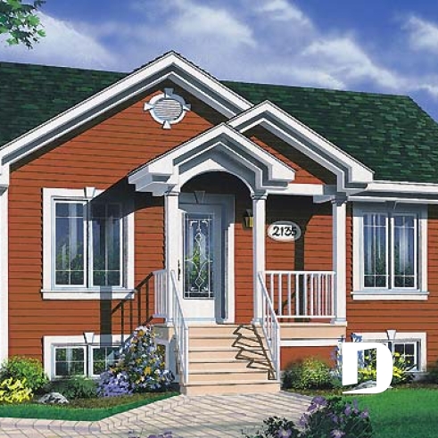 Plan de bungalow très économique, 2 grandes chambres, cuisine fonctionnelle, sous-sol sorti de terre