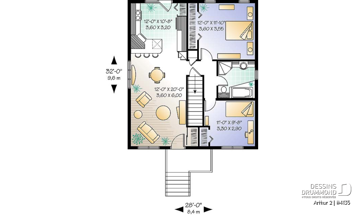 | Largeur | 28'0" | Profondeur | 32'0" |