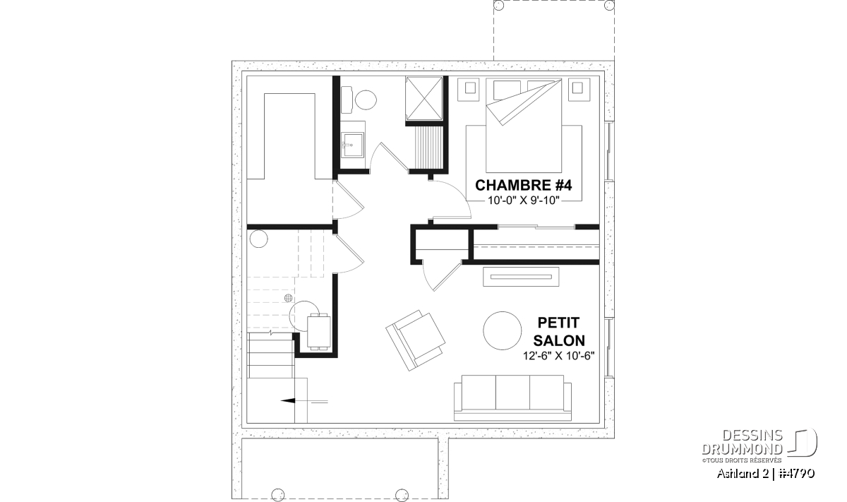 *Si vous souhaitez acheter le plan du sous-sol aménagé, veuillez sélectionner cette option dans le panier d'achat, dans la section "Sélectionner votre fondation". Si vous ne sélectionnez pas cette option, vous recevrez le sous-sol non fini, sans frais additionnel.