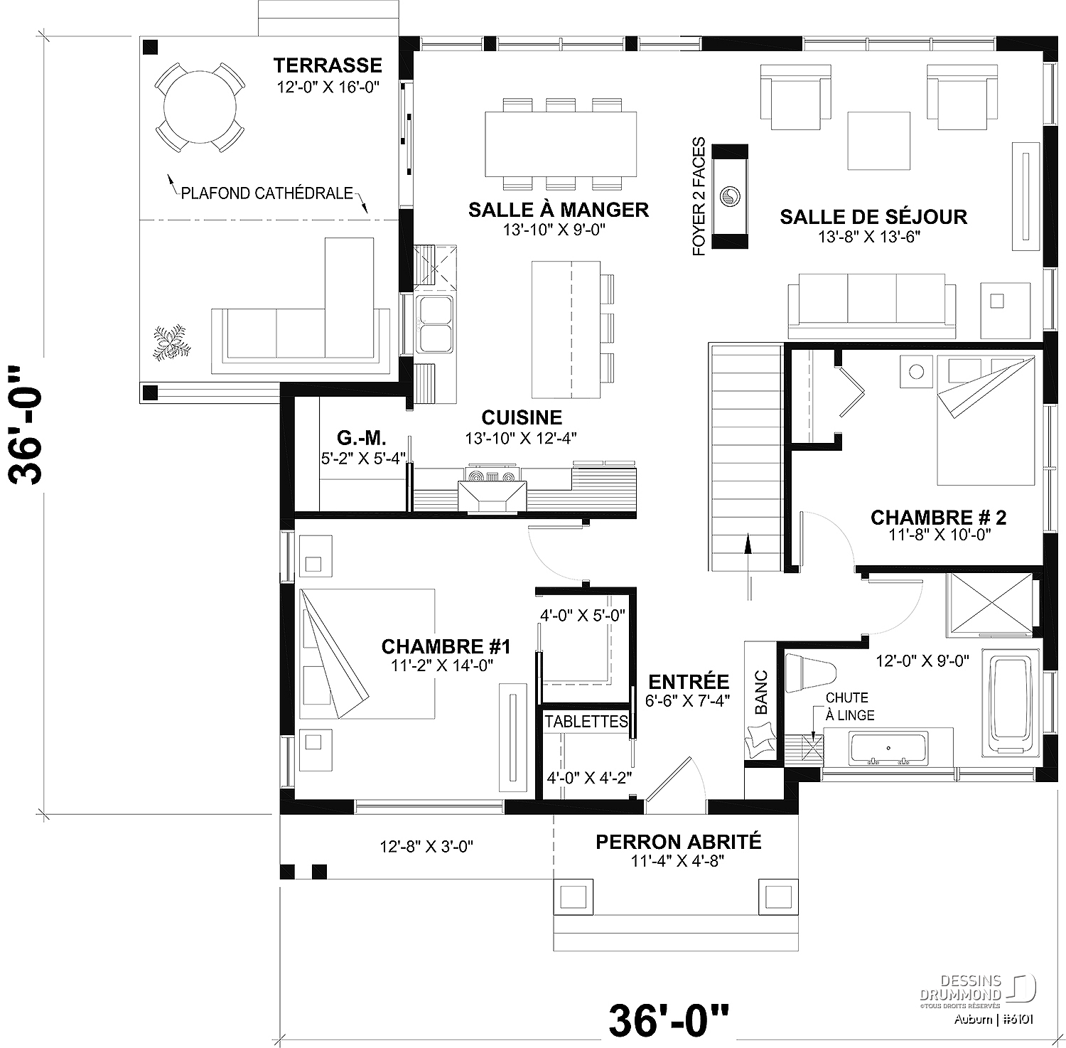 Tous les plans de Dessins Drummond ne peuvent être modifiés que par Dessins Drummond et ses agences reconnues; si vous faites modifier votre plan par une autre entreprise ou personne que Dessins Drummond, assurez-vous que cette entreprise ou personne détient une licence pour la modification de ce plan sinon, vous êtes passible de poursuite judiciaire au même titre que l'entreprise ou la personne avec qui vous avez fait affaires pour la modification ou la reproduction du plan.