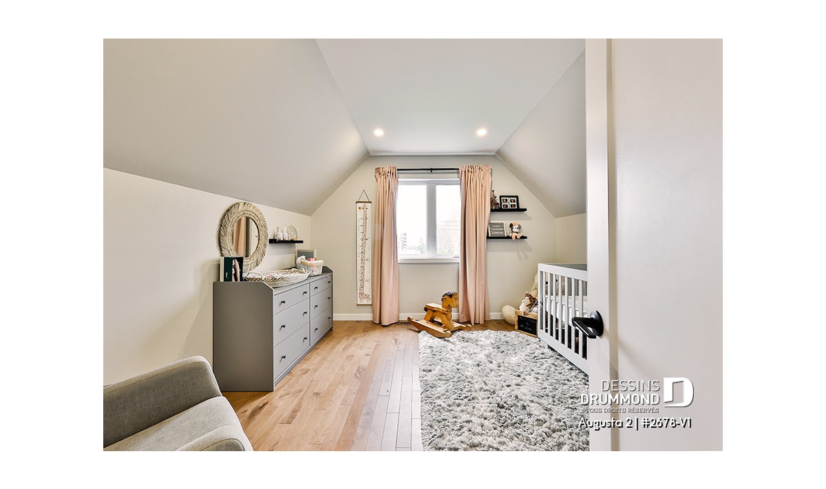Chambres des enfants lumineuses, dotées de garde-robes de bon format et de plafonds en pente ajoutant un cachet unique.