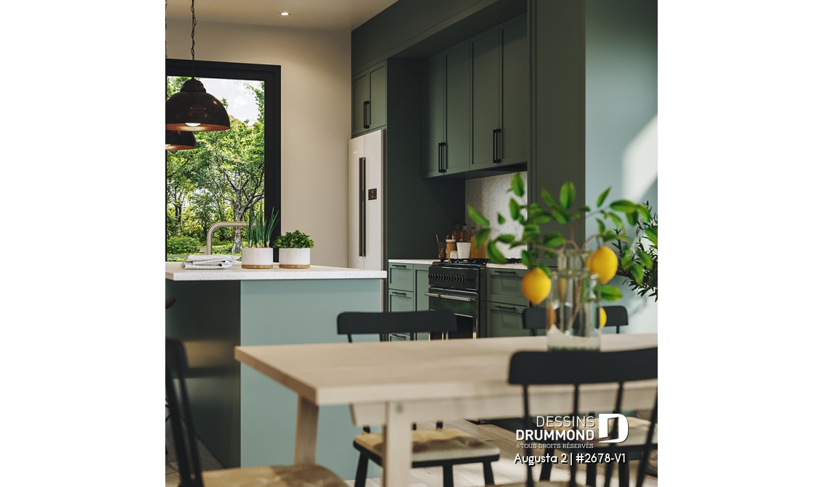Véritable cœur de la maison, la cuisine conviviale propose un îlot central, un garde-manger fonctionnel et un charmant coin tablette décoratif. Cet espace polyvalent peut accueillir vos objets préférés, vos livres de recettes ou encore devenir un coin café chaleureux, parfait pour commencer la journée en douceur. Ouverte sur les espaces de vie, la cuisine favorise les échanges et les moments partagés.