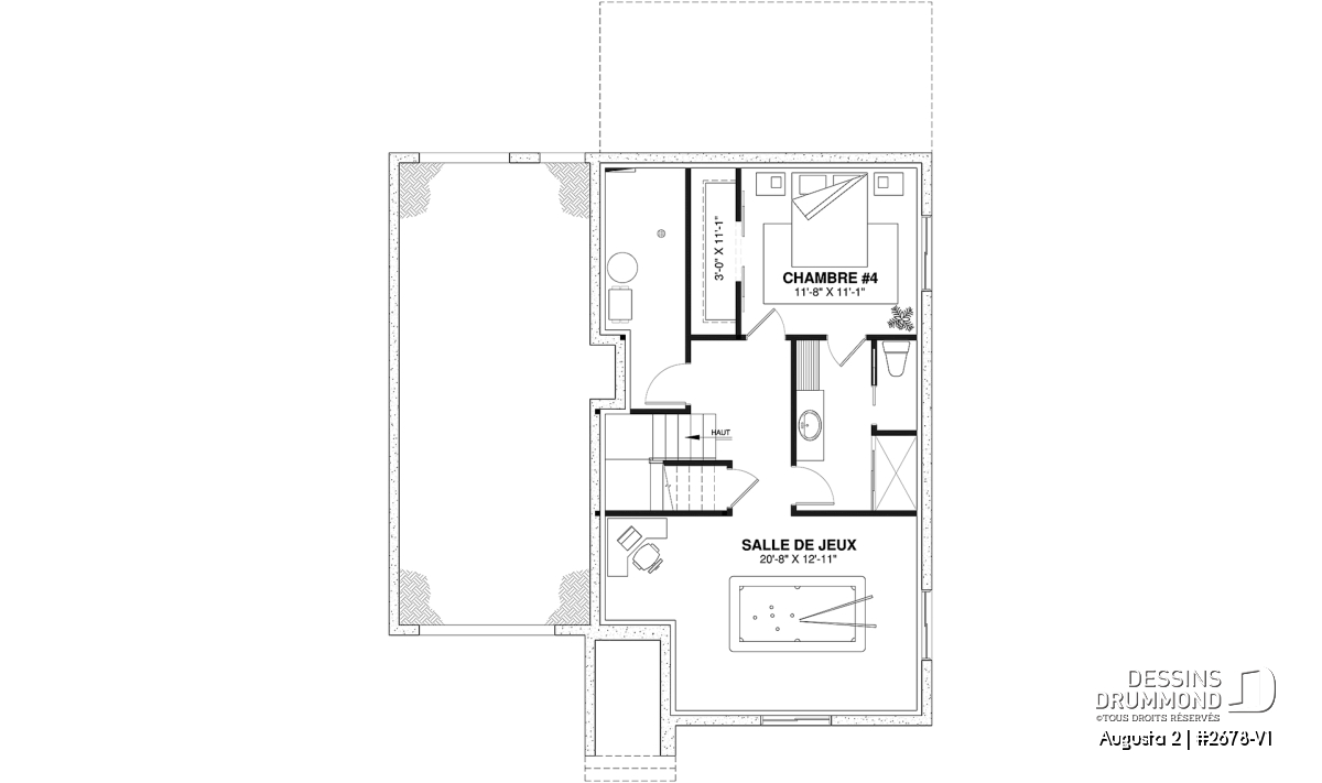 *Si vous souhaitez acheter le plan du sous-sol aménagé, tel que présenté sur la page de ce plan, veuillez sélectionner cette option dans le panier d'achat, dans la section "Sélectionner votre fondation". Si vous ne sélectionnez pas cette option, vous recevrez le sous-sol non fini, sans frais additionnel.