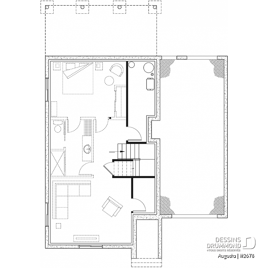 La fondation précisée à cette ligne est incluse dans le plan que vous recevrez, dans le prix du plan ainsi que dans l'estimation du coût de construction SAUF dans le cas d'un sous-sol aménagé. La finition d'un sous-sol aménagé n'est JAMAIS incluse dans notre estimation sauf si avis contraire précisé dans la description du plan et/ou dans la section élément distinctif, sur la page du plan. Un sous-sol aménageable est un sous-sol non-fini, à finir plus tard, selon vos besoins.