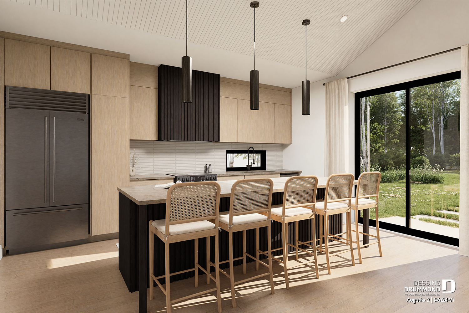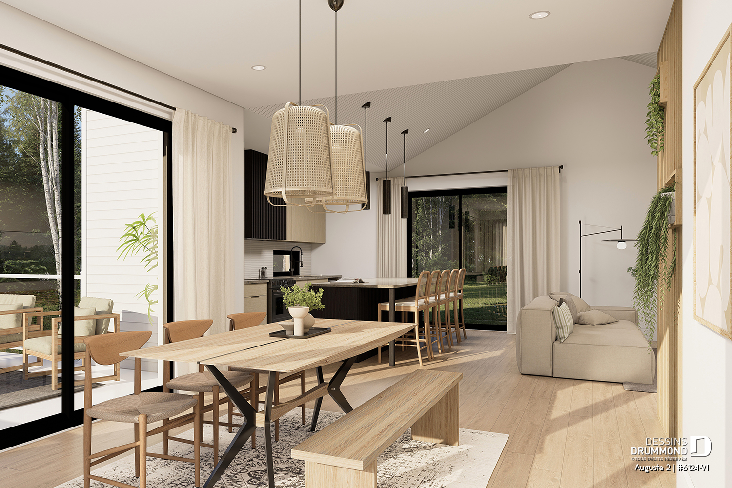 Cependant, si des poutres ou moulures de bois ou imitation de bois sont installées dans un plafond cathédral (sur nos illustrations ou photos), elles ne sont pas incluses dans les estimations. À noter que les poutres de bois illustrées sur l'extérieure de nos maisons sont incluses dans le coût, mais elles sont «capées » et non en bois massif.