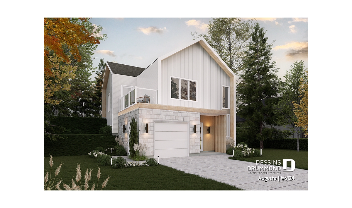 Le plan Auguste (#6124) est une magnifique maison de 1 462 pi² inspirée du design scandinave moderne, combinant simplicité, luminosité et élégance. Conçue pour maximiser chaque pied carré, cette demeure est idéale pour ceux qui recherchent un espace contemporain, chaleureux et parfaitement optimisé. Son garage simple intégré et son aménagement réfléchi en font une option de choix pour les terrains offrant une vue privilégiée.