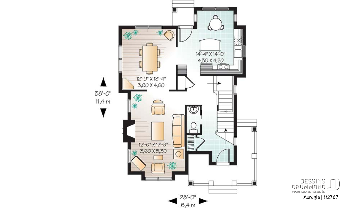 | Largeur | 28'0" | Profondeur | 38'0" |