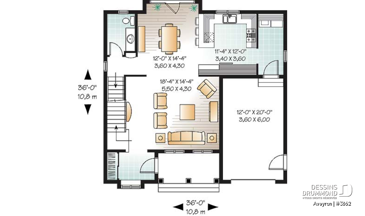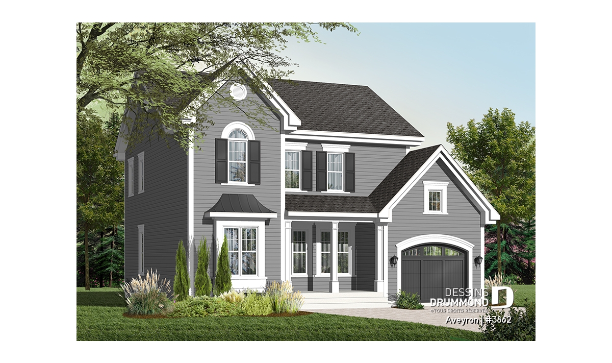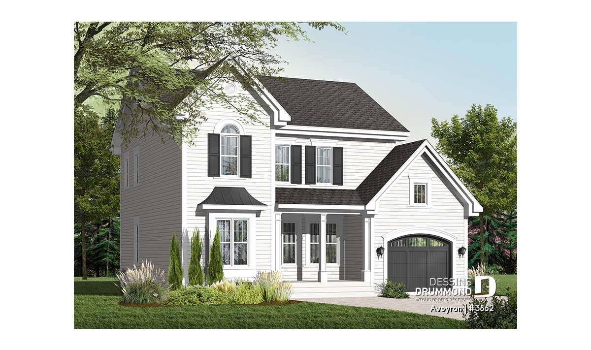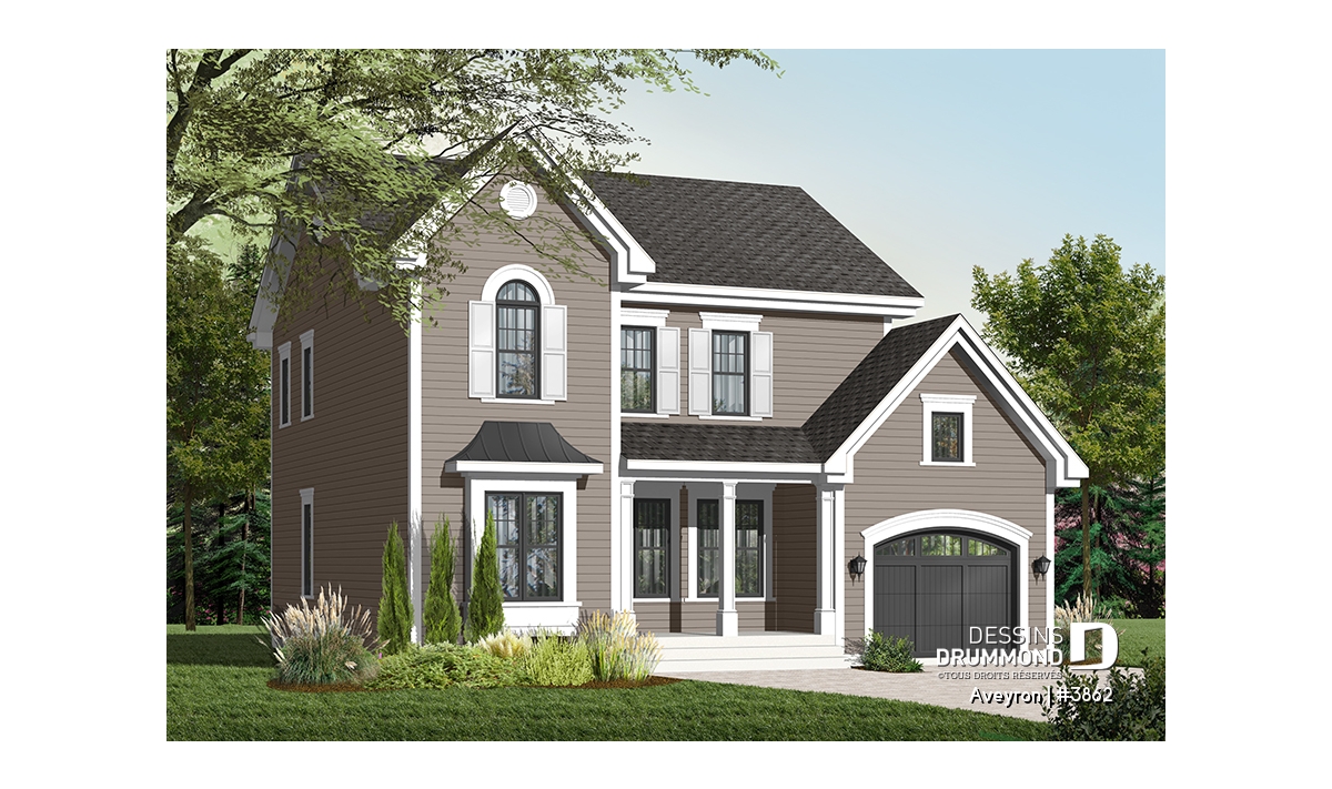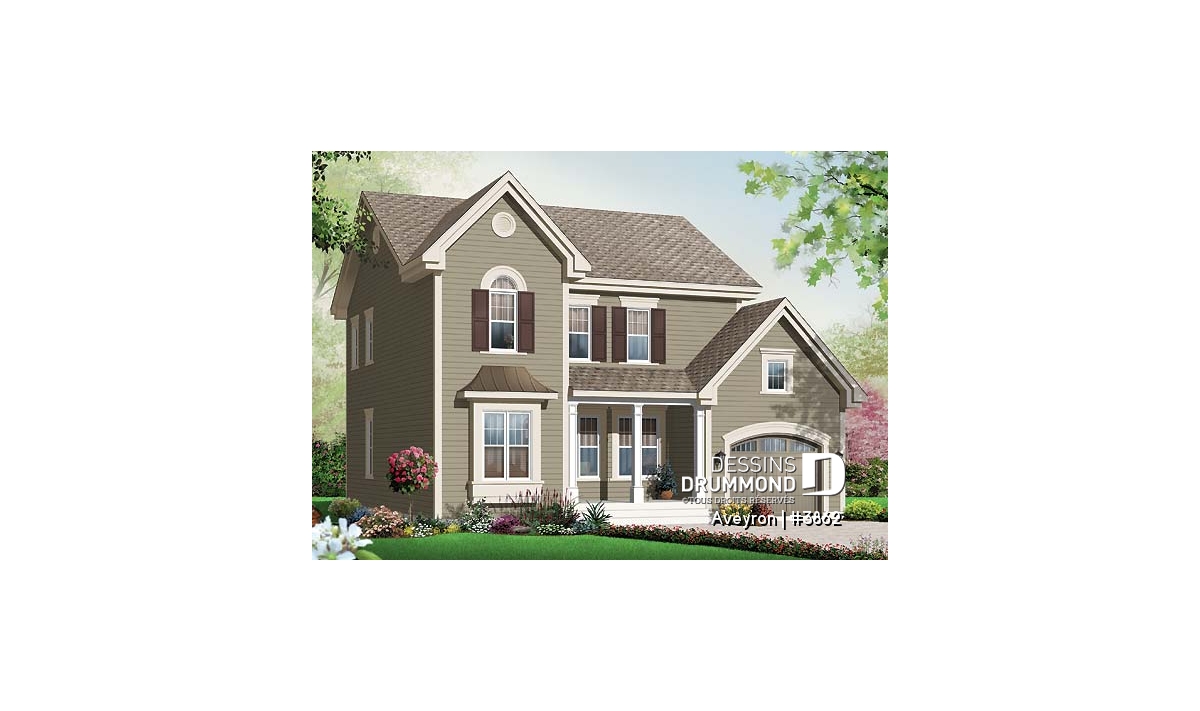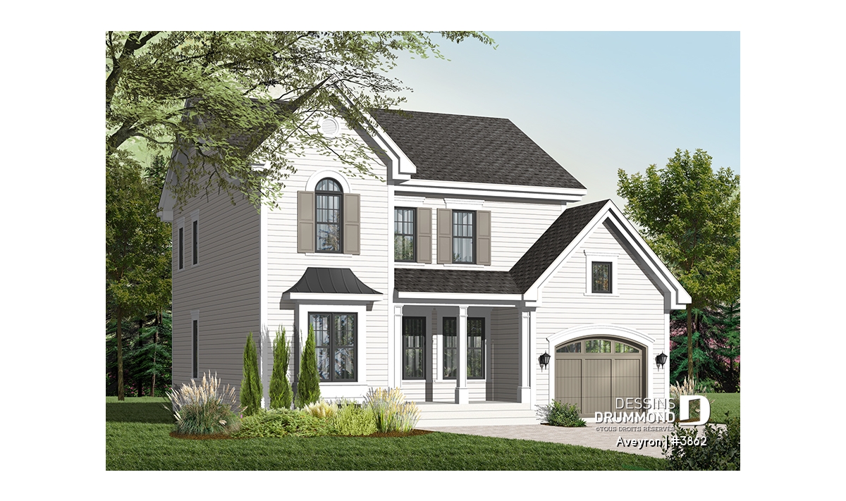 Beau plan de style traditionnel avec garage et 3 chambres.