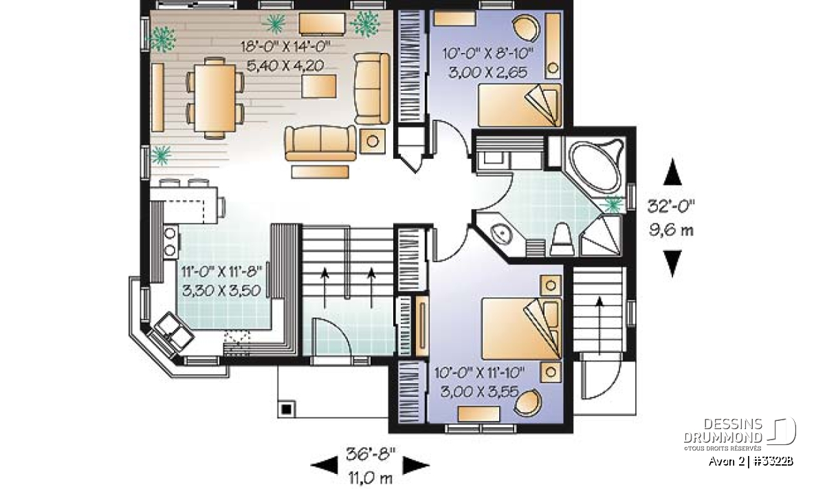Largeur 36'8" Profondeur 32'0"